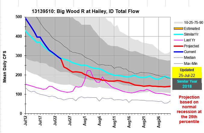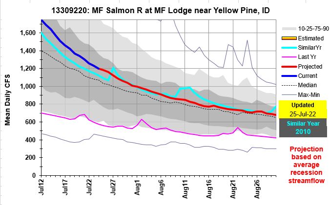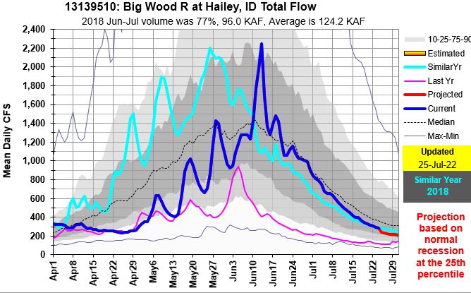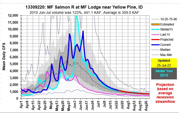 MF Salmon and Big Wood Rivers seasonal flow and projections On July 26, 2022 By Ron Abramovich Related