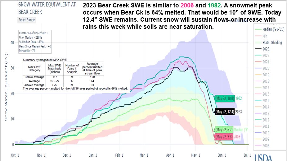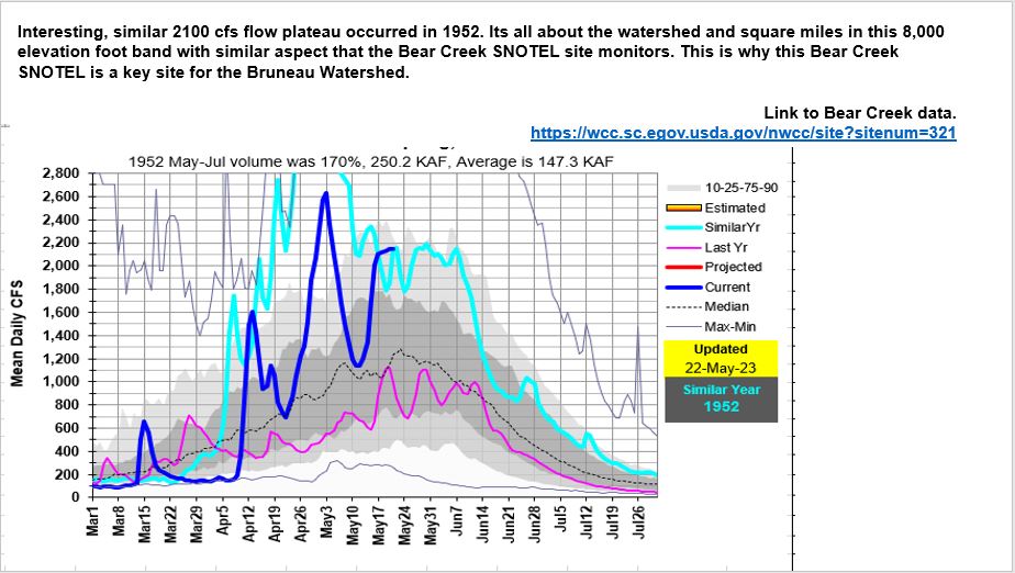 This is too interesting not to share. The 2100 cfs flow plateau has occurred in the past. This is why its important to understand these Snow2Flow Relationships. It’s all about relationships…