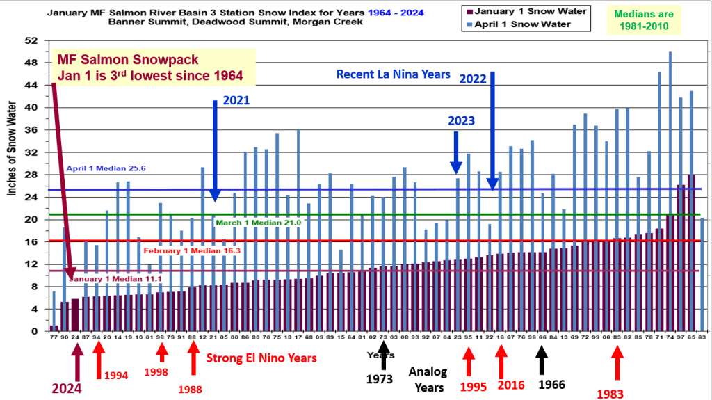 Following are long & short term snow analysis that illustrate the Jan 1 snowpack and how it ended up on Apr 1. Short answer – need more storms!