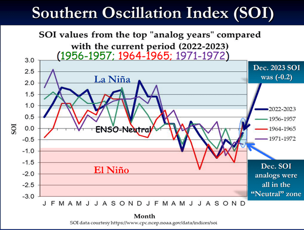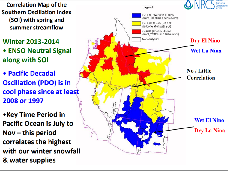 Read on for more info about SOI correlation with western rivers and how analog years are identified and used to help with predicting / monitoring this winter.