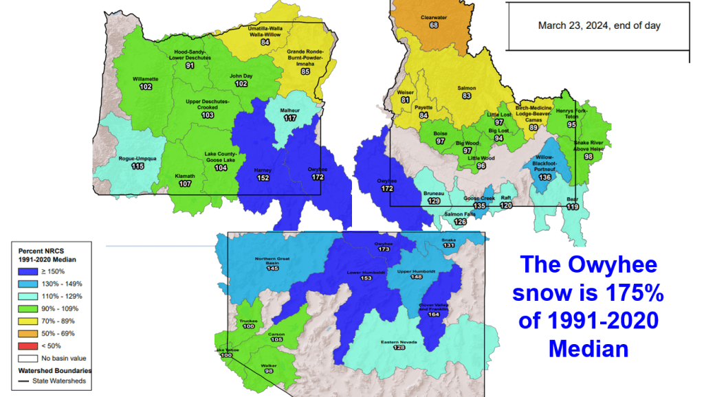 Here’s an update for the Owyhee based on current snow, flow projections and more weather moving in this week and next. It’s nice to look at big picture to see what’s happening around this tri-state basin.