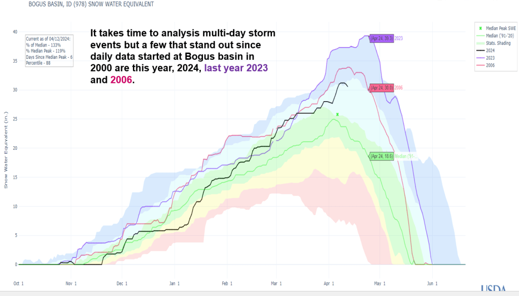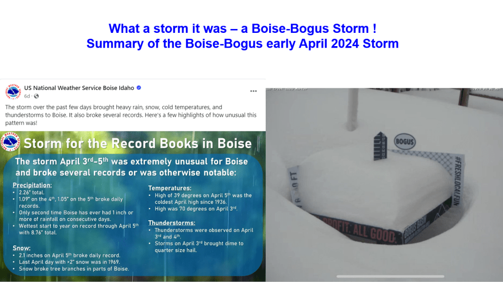What a storm it was – a Boise-Bogus Storm ! On April 15, 2024 By Ron Abramovich Summary of the Boise-Bogus early April 2024 Storm bogus-storm-april2024-aDownload Related