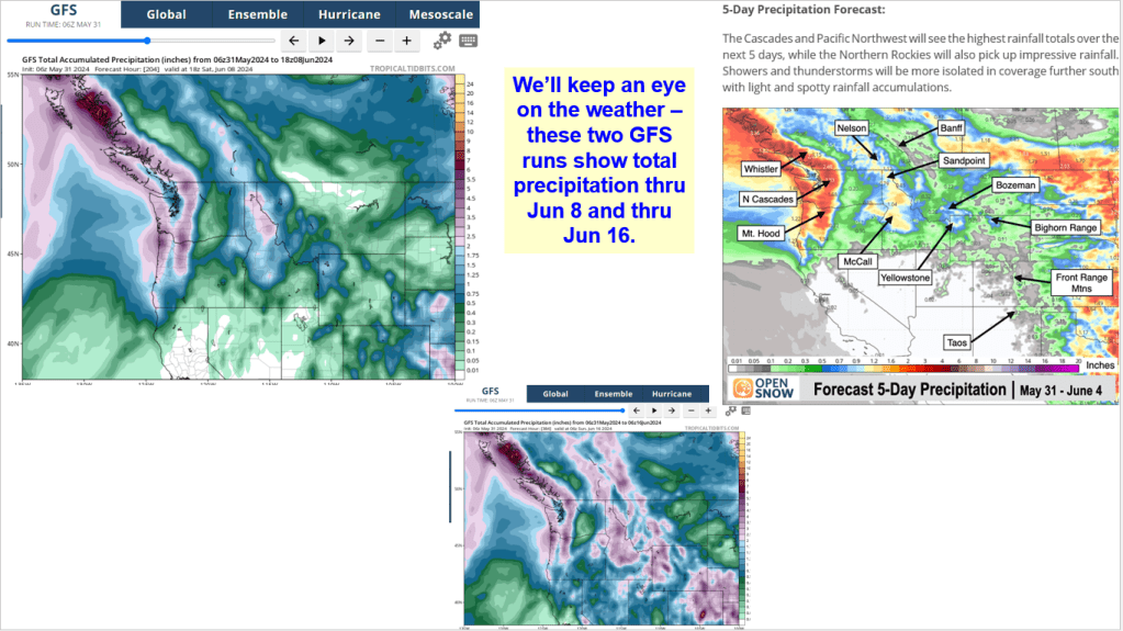 Update for Selway Lochsa Moyie Owyhee Bruneau Wood Lost and more Idaho rivers. Keep your eye on the weather as one more AR moves in next week.