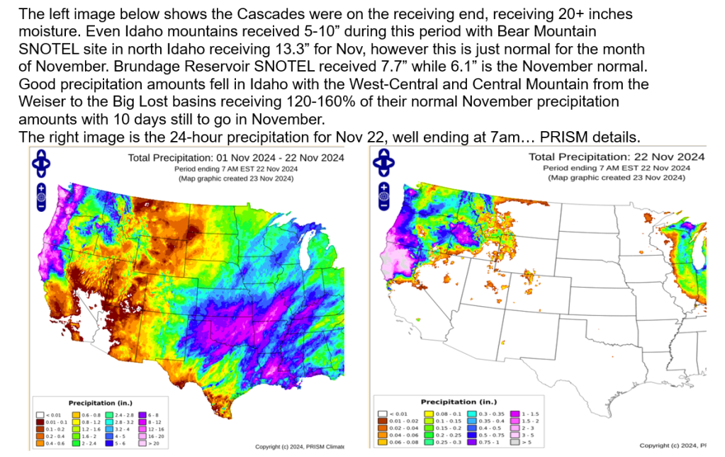 With hurricane strength winds, very low pressure, 20+ inches of precipitation, and snowfall measured in feet, you can call it what you want, bomb cycle, typhoon, hurricane, but the Category 4 Atmospheric River (AR), is just want we needed. Let’s look at the big picture – the hydro conditions before the storm and where we are now that the stage is set, and dinner is being served.