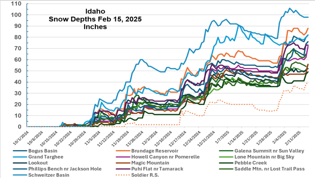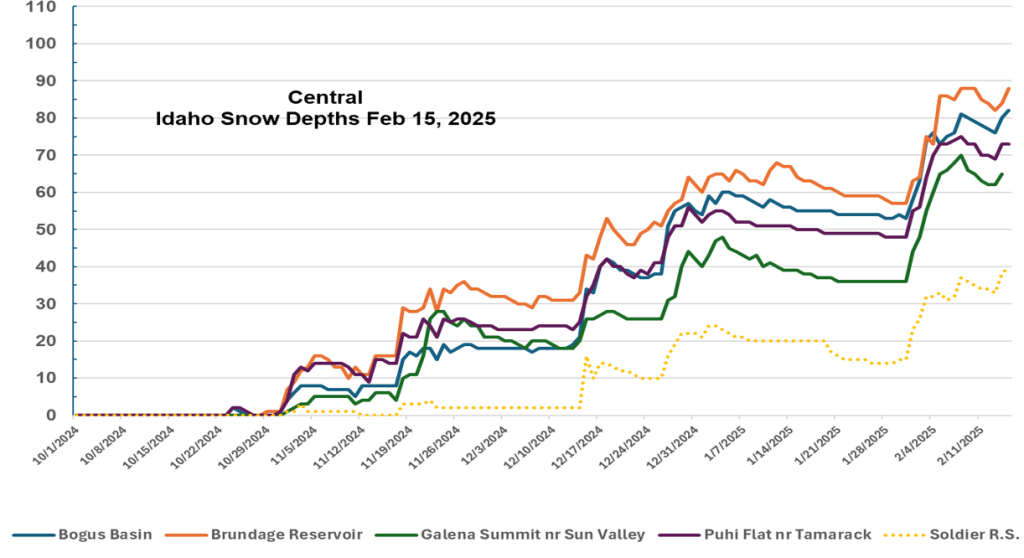 Here’s a snow depth summary for sites around your favorite ski areas. More storms on the way this week, 17, 19 and potentially around March 1.