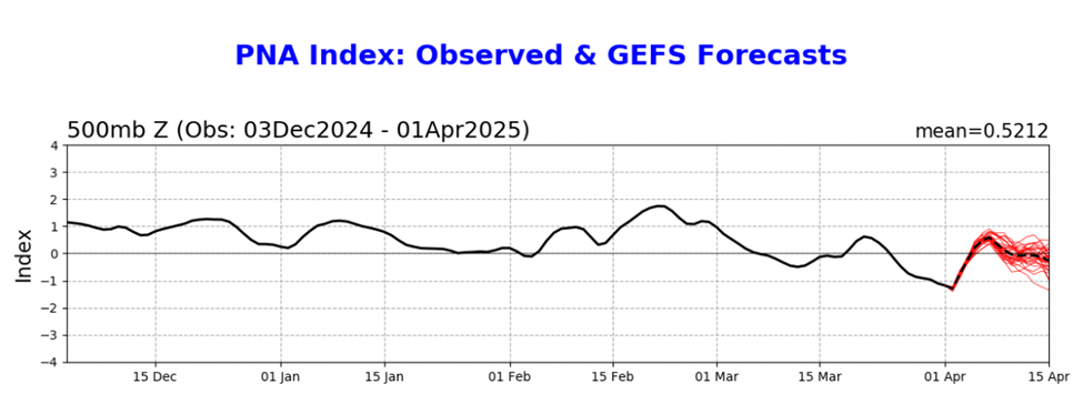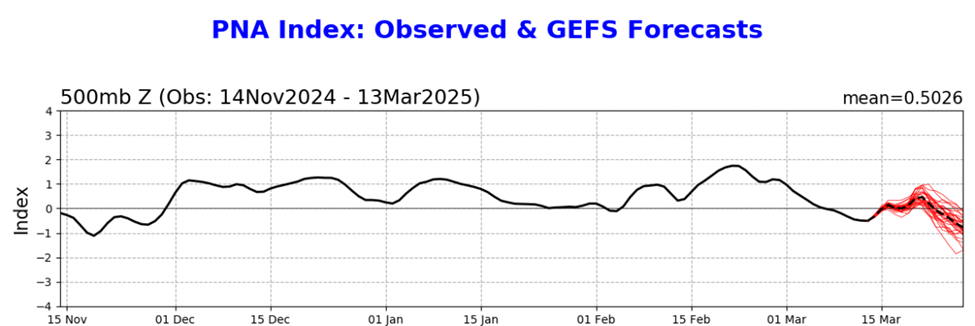 Here’s current PNA which shows the Apr 1 drop, then going positive which means return to high pressure in early April.