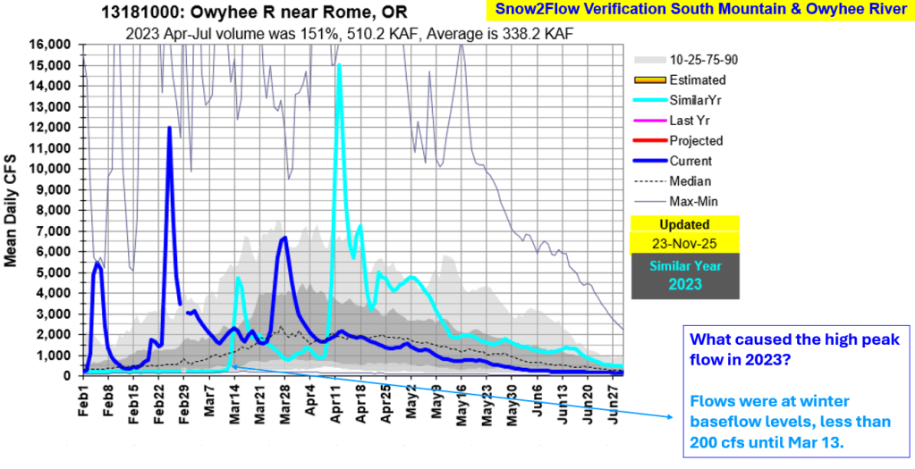 It’s always good to verify forecasts to better understand what works, and why or why not. This provides a better understanding of the relationship, other climate influencers that may have impacted the outcome and when works best. Following is a summary of Snow2Flow relationships used to predict date of peak flows, range of dates, and if the potential for additional snowmelt peaks has past or is decreasing
