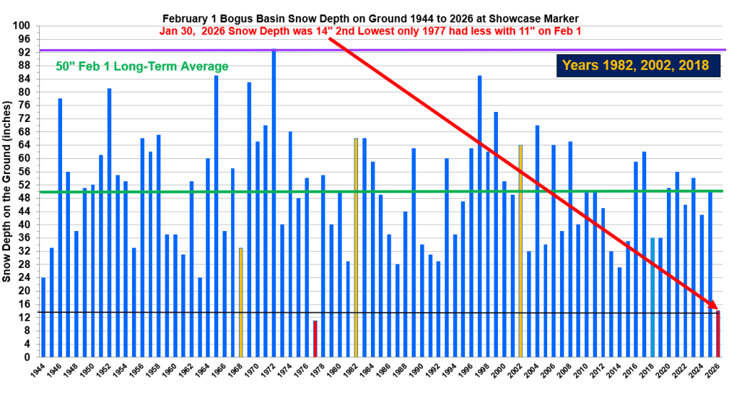 A change in weather pattern starting around Dec 18 as hinted by Nov SOI Spikes brought numerous Atmospheric Rivers events with abundant precipitation to parts of the West. Too much rain in some areas. Locally, warm temps allowed this moisture to fall as rain rather than snow except in higher elevations around Idaho. Water year to date precip is near normal across most of the state. Snowpacks are near record low in lower elevations and increase in higher elevations. Smiley Mountain snow, in the Big Lost Basin, is 171% of normal. Here’s a summary explaining the abundant moisture and influence of temps on snowfall across central Idaho.