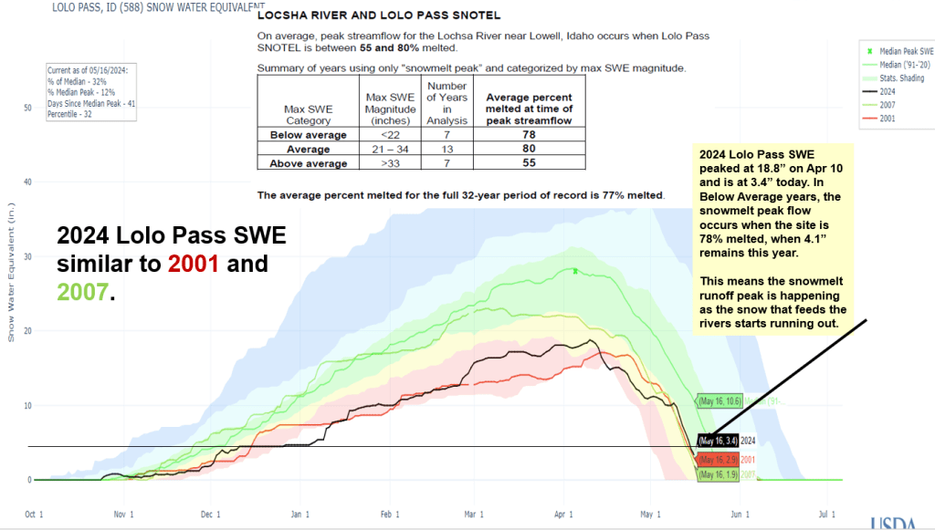It’s always nice to see what the rivers are doing where you are going or where you want to be. The recent cold spell put a damper on snowmelt when rivers were increasing and put a twist in the Snow2Flow relationships, but there’s still enough remaining snow to generate another increase if not the peak for the season. Stay tuned, and if you happen to see the Big Lost Shite Stallion, let me know !